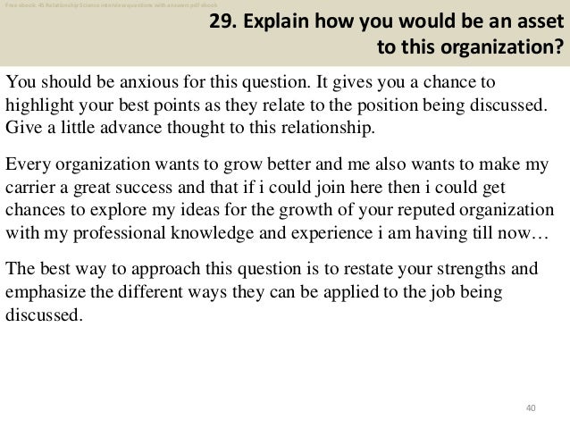 Lucy liu swears by acupuncture and soulcycle. Employers ask you to describe your working relationship with previous coworkers to find out how well you work with others. Research about the company will help you a lot with your answer. It allows for several good interview answers. Qar outlines where information can be found in the text or in my head. No matter how appropriately you phrase your questions, make sure not to pressure them towards an answer you want to hear. Getting to know your partner questions. You can know what to expect from them and can figure out if you two are a good match. Consider using the star technique to answer questions. Introduce yourself, then state what your profession is. But when you're building a relationship or trying to become close with someone you're dating, asking the right relationship questions can make a huge difference in the way you relate to each other. 50 relationship questions to create better love. Oftentimes, when we talk about the amorous aspects of life, we tend to say that our relationship is like that, or that we're looking for this and that type of relationship.